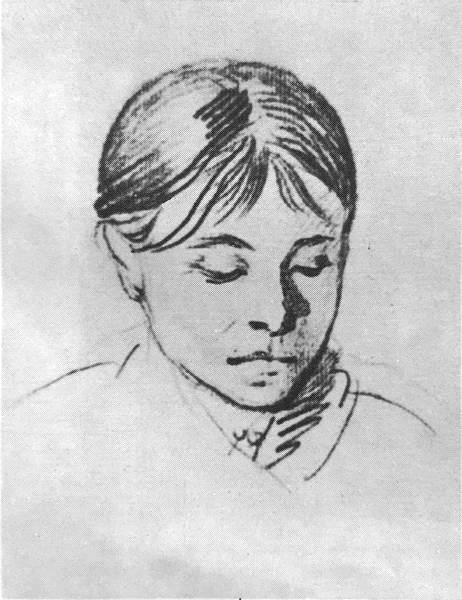 Набросок головы крестьянской девушки. Лист из альбома 1807 года. Бумага, итальянский карандаш. Ленинград. Русский музей.