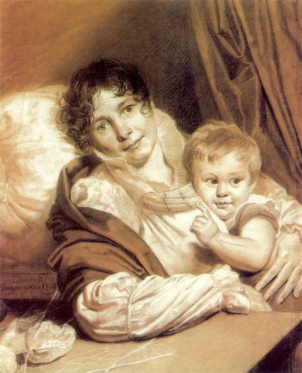 Мать с ребенком (Прейс?). 1809. Бумага, итальянский карандаш, мел. Москва. Третьяковская галерея.