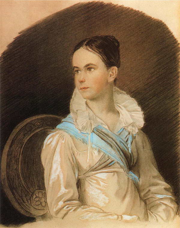Портрет В. А. Томиловой. 1813. Бумага, итальянский карандаш, сангина, пастель. Москва. Третьяковская галерея.