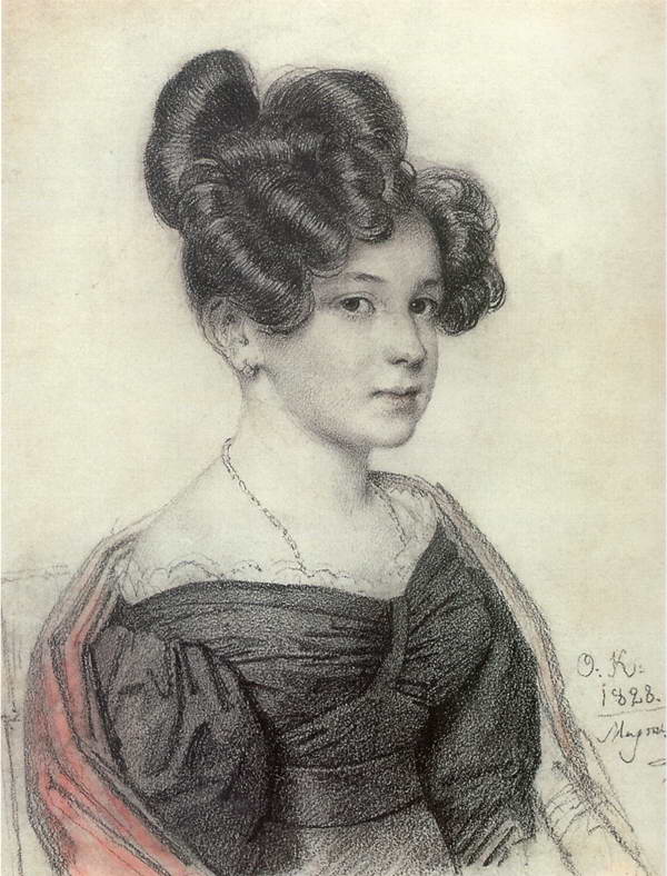 Портрет А. А. Олениной. 1828. Бумага, итальянский карандаш. Москва. Третьяковская галерея.