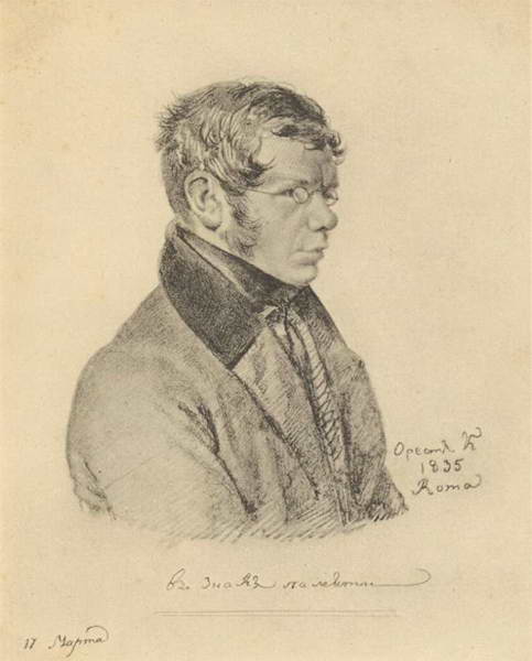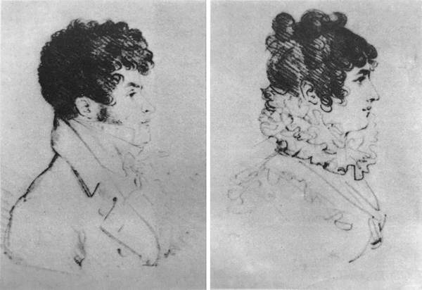 Портретные наброски, сделанные в альбоме З. А. Волконской, как предполагается, рукою О. А. Кипренского. США. Рукописный отдел Библиотеки Гарвардского университета. Ранее собрание В. Леммермана в Риме.