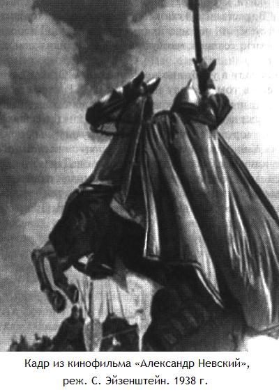 «Александр Невский» построен как былина. Эпические образы Эйзенштейн видит крупными, целостными, высеченными из одного куска, из одной глыбы, свободными от дробных, мелких черт, от психологических деталей. <…> Не древность, не прошлое, не старина только являются достоянием эпоса. <…> В наши дни складываются былины о сегодняшней жизни народа, о сегодняшних его героях, и голос сказителей, творящих новый эпос, не звучит чуждым в советской поэзии. Более, чем когда-либо в истории, наше время — время эпоса[376].
