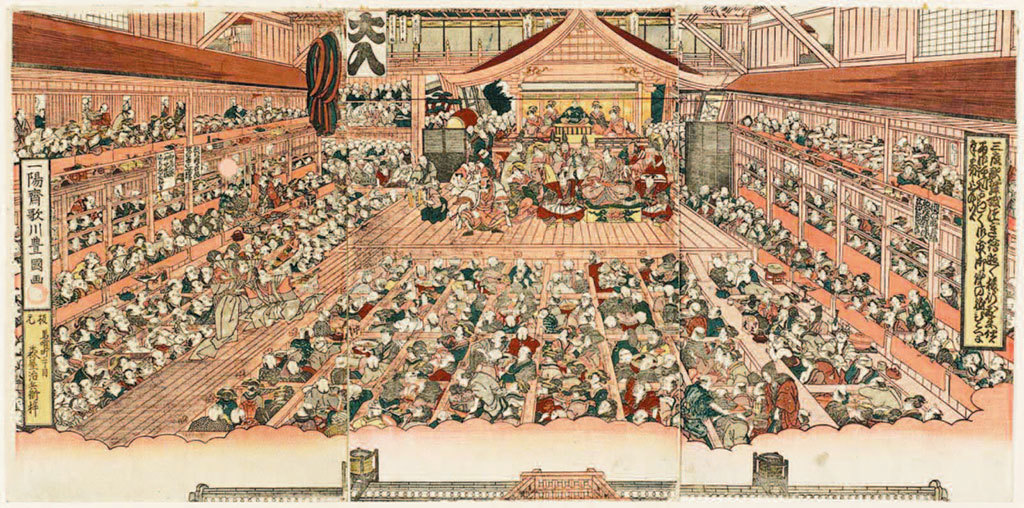 В настоящее время театр Кабуки известен как традиционный японский театр, но в период Эдо это было популярное массовое развлечение для городского сословия. В отличие от театра Но, предназначенного для людей высоко происхождения, театр Кабуки носил массовый характер.
