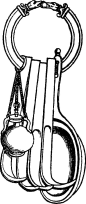 Поскольку при занятиях гимнастикой, в частности в гимназиях и палестрах, раздевались донага и натирались маслом, то понятно, что от пота, масла и пыли тело загрязнялось, поэтому каждый приносил с собой особый прибор, состоявший из нескольких металлических скребков, которыми по окончании упражнений счищали грязь с кожи. Эти скребки для удобства обычно надевались на кольцо вместе с губкой и сосудом с маслом (рис. 150).