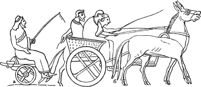 Для перевозки тяжестей служили такие же, как и во времена Гомера, двух- и четырехколесные повозки (рис. 152, а, б).