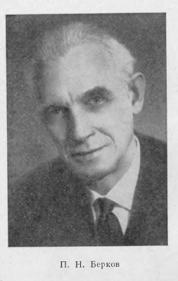 Автор первой во всей нашей, и не только нашей, литературе «Истории советского библиофильства», профессор литературоведения, член-корреспондент Академии наук СССР Павел Наумович Берков был во всем незаурядным человеком. Его авторитет и талант, его изумительная культурность и глубина знаний в избранной им области — истории русской литературы XVIII в., — снискали ему международное признание. Число работ его, опубликованных на многих европейских языках, почти необозримо. С редкою щедростью и блистательностью подлинного дарования в обобщающих трудах и множестве монографически-специальных статей, в прекрасных по содержательности и по форме изложения лекциях и докладах профессор Ленинградского университета, гость зарубежных академий социалистических стран и бессменный председатель секции книги Ленинградского Дома ученых Павел Наумович Берков был одинаково ценим как исследователь и популяризатор драматургии русского XVIII в., просветительства Петровской эпохи, — и поэзии Валерия Брюсова. Широта интересов подлинного друга литературы сочеталась во всей деятельности Павла Наумовича Беркова с проникновенной точностью детальнейшей аналитики, характерной для настоящего «мастера науки». И был Павел Наумович Берков всегда скромен, внимателен и принципиально требователен к себе и к своим друзьям. Свою специальность, литературу, любил он самоотверженно и безотказно. И был другом книги и книг, равного которому, быть может, не осталось у нас после (безмерно всех его многочисленных друзей опечалившей) его кончины в 1969 г. в возрасте семидесяти трех лет, после достойно и плодотворно прожитой жизни.