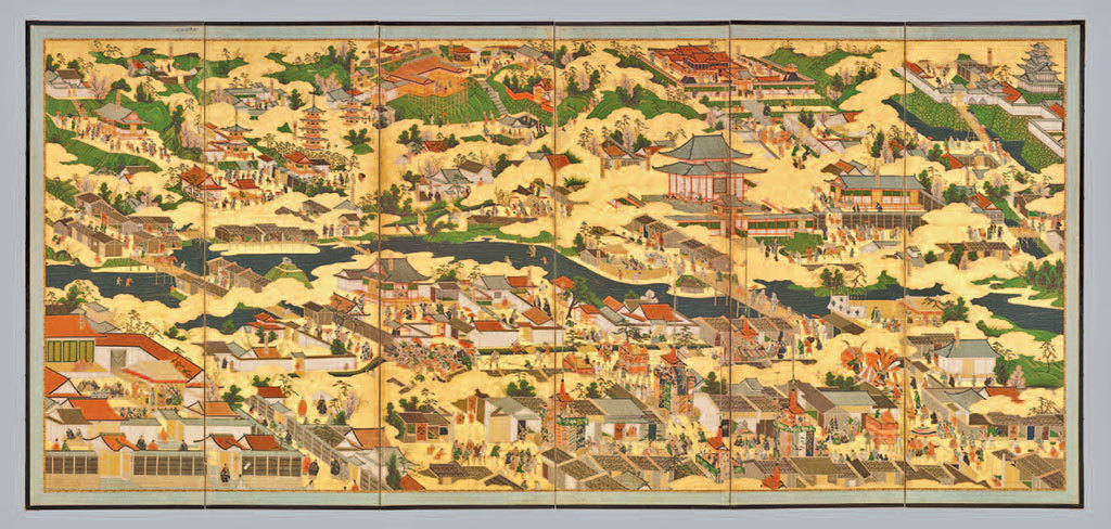 Шестистворчатая ширма с изображением сцен в столице (Киото) и вокруг нее