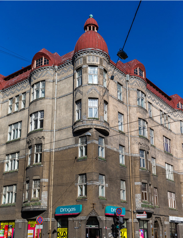 Так, в частности, в латышской столице был определен закрытый тип застройки. Дома, как и в Петербурге, часто располагались по «красным линиям», вплотную друг к другу. Площадь внутреннего двора не должна была первышать 136 квадратных метров. Высота зданий ограничивалась 10 саженями (21,3 метра), что, примерно, соответствовало 5—6 этажам.103