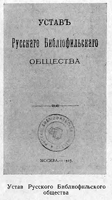В разделе «Задачи Общества» в § 1 сказано: «Русское библиофильское общество учреждается в Москве и имеет задачи: культивировать истинную любовь и уважение к книге и содействовать объединению лиц, преданных библиофилии» (166).