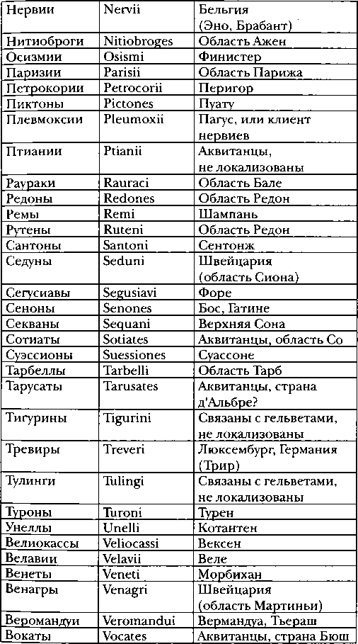 Народы Трансальпийской Галлии, перечисленные Цезарем