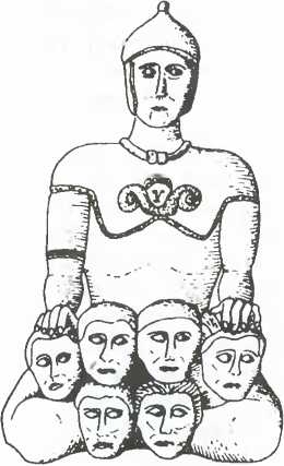 Но самый знаменитый воинский ритуал — это, конечно, взятие головы врага. В греко-латинской литературе это клише, которое, впрочем, подтверждается недавними археологическими открытиями. Так, на месте битвы при Рибемон-сюр-Анкре (Сомма) эта практика, видимо, носила систематический характер, и подобным образом поступили с несколькими сотнями трупов. Надлежит уточнить, что речь не идет о настоящем обезглавливании, как можно было бы подумать, учитывая расхожее значение термина — декапитация. Это педантичная операция, проделываемая с помощью ножа над мертвым врагом, распростертым на земле, для которой требуется время от нескольких минут до нескольких десятков минут. Античные историки уточняют, что взятие головы производится непосредственно после смерти врага, когда бой в самом разгаре, и что победитель спешит прицепить этот трофей к своей лошади. Нам известно также, что отрезанные головы после боя приносят домой, выставляют и после процедуры консервации (утверждают, что с помощью кедрового масла) аккуратно хранят в шкафу. То, что речь идет о ритуале, подтверждается тем, что он привычно выполняется в течение многих веков. Однако невозможно утверждать, является ли он всецело или отчасти религиозным. Если речь идет о трофее, то он имеет ту же ценность, что охотничья добыча — она свидетельствует о доблести охотника. В данном случае количество отрубленных голов определяет положение воина в определенном иерархическом порядке, который имеет у галлов громадное значение и проявляется, в частности, в том, кому какое место следует занимать на пиру. Но, возможно, отрубленная вражеская голова также выполняет функцию единицы счета при распределении добычи или вознаграждения, выплачиваемого не за факт службы, а за конечный результат. Так как остаток трофеев (трупы и доспехи) часто целиком посвящается богам, то важно, чтобы воин сохранил свидетельства своей храбрости. Ничто не доказывает, что такая практика у кельтов и у галлов, в частности, имела магический смысл — например, присвоить себе душу убитого врага.