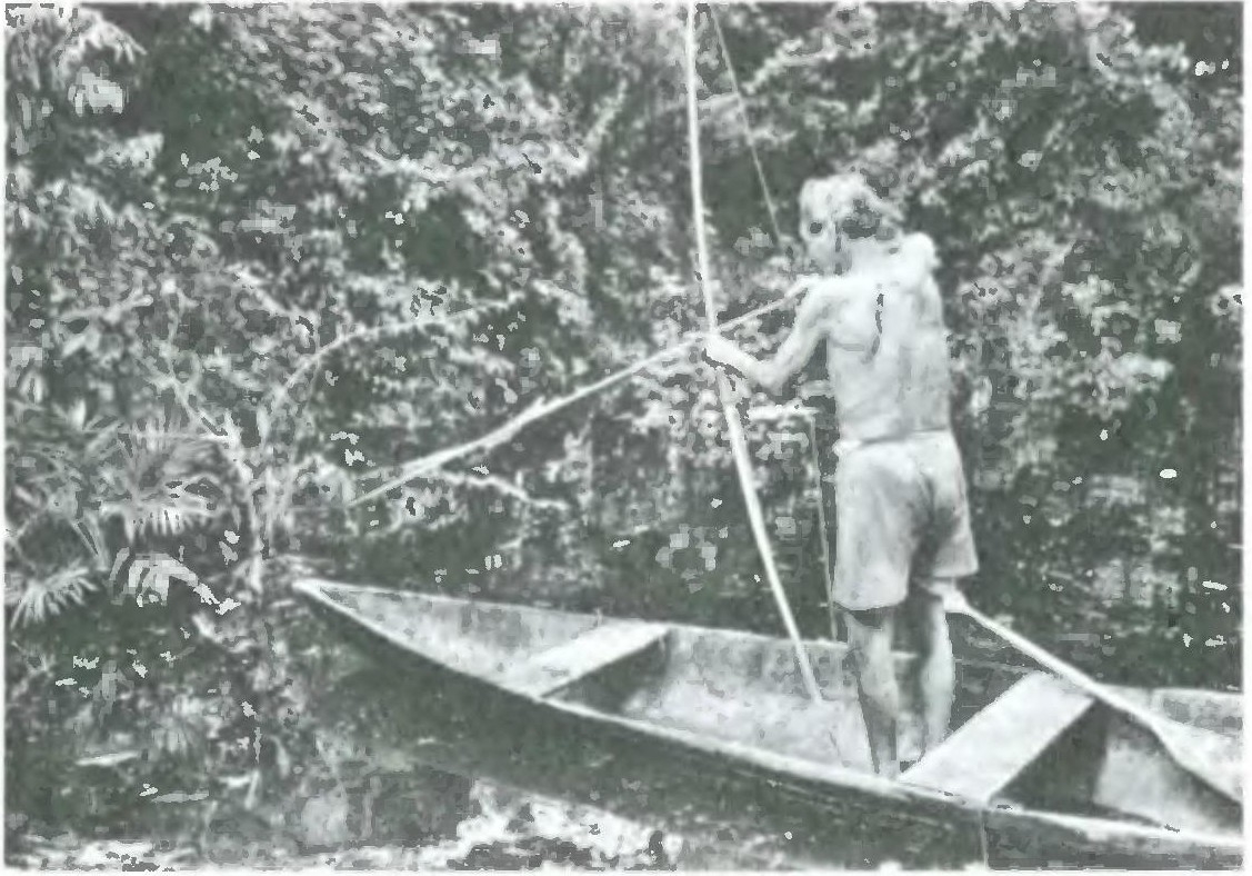 в сторону Амазонки. На реке можно встретить огромные стволы и ветви, и особенно опасны среди них те, которые плывут у самой кромки: их труднее всего заметить. Впереди, метрах в двадцати, в стремнине я увидел изогнутое бревно. Когда я только начал путешествовать в бассейне Амазонки и все время ожидал увидеть нечто новое в этом новом мире, я принимал все бревна за змей: в воде кажется, что дерево извивается. То же самое происходило и с этим деревом, хотя я уже знал довольно много и понимал, что это не змея. Я также знал, что змеи не бывают такого размера. Это бревно было, кажется, метров двенадцать в длину и больше полуметра в обхвате.