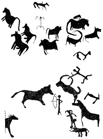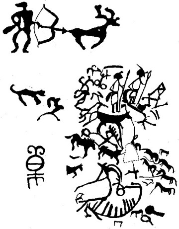 Рис. 53. Петроглифы хуннского времени. Цагаан-гол