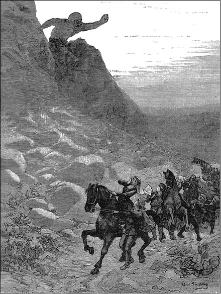 Великан, далеко припрятавший свое сердце. Иллюстрация О. Синдинга (1883). Великан превращает людей в камни