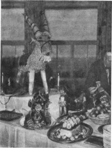 После торжественного ужина начинаются танцы и игры, которые продолжаются все святки. Танцуют поочередно в каждом доме. Самый первый дом в связи с этим в некоторых областях Швеции освящают (в обл. Эстергетланд). В первом доме перед танцами устраивают представление. В дом входят две молодые девушки в белой одежде с красивыми блестящими коронами на голове, с угощением на подносе. Затем входят две следующие девушки, одетые так же, и вносят куст (buske) или небольшую елку с горящими свечами. Елку ставят на пол посередине дома, и все четыре девушки образуют круг около елки и поют песни в честь всех присутствующих. После этого елку ставят на стол и начинают танцевать. У любителей спорта после обеда — коньки, лыжи, санки. На второй день рождества чаще всего устраивают народное театральное представление. Рождественские танцевальные вечера являются временем веселых шуток и проказ, которые устраивают ряженые. Чаще всего рядятся в козла, надевая на себя вывернутую овчину, а на голову приделывая рога, деревянные или настоящие. Иногда во рту маски торчит зажженная пакля или лен, так что вокруг летят искры. Ряженые врываются в середину танцующих и вызывают переполох. В некоторых деревнях в роли ряженых в рождество выступают в течение нескольких лет одни и те же люди.[325] Кроме «ряженых-козлов», в рождество ходят по домам так называемые «рождественские привидения» юль спекен (jul sp?ken). Мужчины обматываются поверх одежды большим куском льняной ткани, затягиваются шнуром по бедрам, набивают под ткань солому для изменения фигуры, на шею подвязывают длинный грубый шерстяной галстук, надевают черную высокую шляпу, лицо обмазывают сажей или темной краской, берут в руки палку и в таком виде ходят по домам. Обычно с женщиной или девушкой; она наряжается в большое старое женское пальто, а на голову надевает широкополую шляпу. Войдя в дом, ряженые спрашивают, какую работу они могут сделать. Им поручается какое-нибудь дело, а затем их угощают пивом, вином, орехами, рождественскими яблоками. Ряженые поют песни, под которые можно танцевать. После начала танцев ряженые идут в другие дома, выбирая обычно наиболее приветливых и щедрых хозяев.