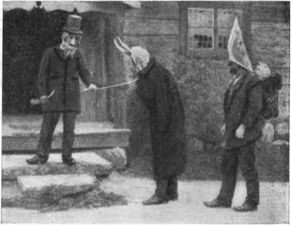 Итак, рождество кончается 13 января. Говорят, что «Кнут уезжает с рождества». В этот день вечером устраивают последний рождественский бал, на который приходит наряженный Кнут. Рождество кончается в 12 часов ночи между днем Кнута и Феликса (13 и 14 января). Проводы рождества сопровождаются ряжеными. В области Сконе (юг Швеции) участвуют при проводах «ведьмы» (Felixdockan): в женскую одежду наряжается кто-нибудь из мужчин, или делают чучело. Потом чучело выбрасывают. Вечером приходят ряженые, одетые самым неузнаваемым образом — женщины в брюки, мужчины — в юбки, в масках, они меняют голоса, чтобы их не узнали. Это «рождественские привидения».[334] Кнут тоже ходит по дворам с веселыми остротами, за что его угощают. Вечером в праздник в компании ряженых приходит рождественский козел.