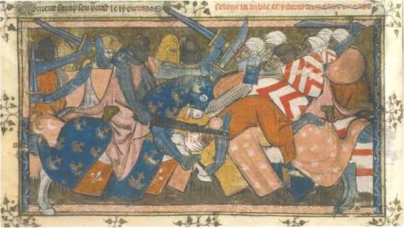 Битва евреев с хананеями. Миниатюра, Париж, XIV век.