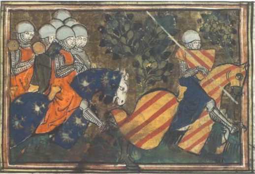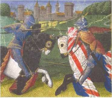 Битва Ланселота и Паламеда. Из книги «Рыцари Круглого Стола», Франция, XV век.