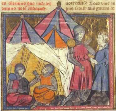Прибытие Мерлина к месту битвы. Из книги «История Мерлина», Париж, XIV век.