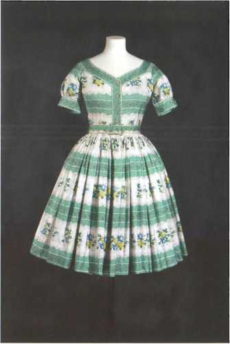 Платье в полоску с цветочным узором. 1950-е годы.