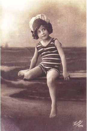 Девочка в полосатом купальнике. Открытка, начало XX века.