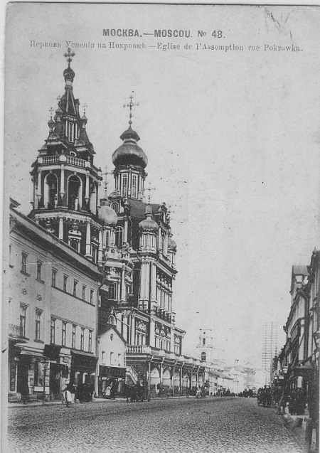 Побывал я с отцом и в знаменитой церкви Успения на углу переулка, названного в 1922 году Потаповским в честь её строителя Петра Потапова. Та была значительно выше, иконостас казался больше и богаче. Чем-то она напоминала уцелевшую церковь Троицы в Никитниках, но та как-то сжата, как цветы в букете. Успение же на Покровке раскидывалось пышным кустом.