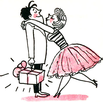 Жена обычно готовит мужу подарки ко дню рождения, именинам, годовщине свадьбы или какому-нибудь юбилею. Она выбирает по большей части полезные и нужные вещи — вечное перо, курительные принадлежности, рубашку, галстук, шарф, носки, кошелек, бумажник, портфель, хорошую книгу и другое.