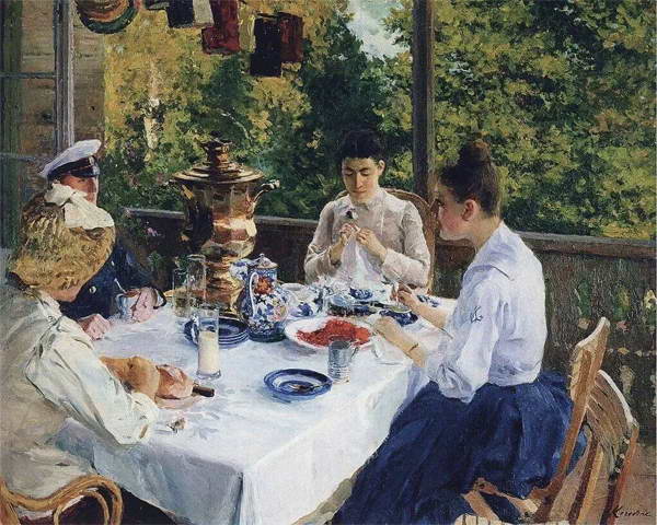 К. Коровин. «За чайным столом». 1888. Групповой портрет, которым всегда восхищался Поленов.