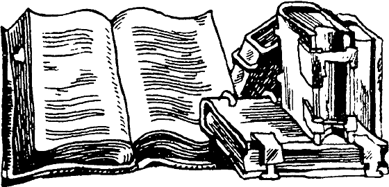 Путь изобретения проследить трудно. Видимо, первый шрифт Гутенберга был деревянным; кажется, еще в XVI веке видели его остатки. Дерево менее надежный материал, чем металл, и Гутенберг гениально определяет соотношение трудно- и легкоплавких металлов для своих целей. Из железа вырезается модель выпуклой буквы — это так называемый пуансон. Затем надавливанием железного пуансона на более мягкий металл — медь, получается обратное вдавленное изображение буквы — это матрица. Наконец, заливая матрицу легкоплавким металлом — свинцом или оловом, — можно получить любое количество литер, которые могут быть использованы бесчисленное количество раз. Далее нужно взять в руки линейку с бортами — верстатку — и набирать в нее литеры в нужном порядке. Строки укладываются под пресс с заготовленным листом бумаги. Нажатие рукоятки — и первый оттиск готов. Его можно повторить множество раз, и любое количество экземпляров издания в вашем распоряжении.