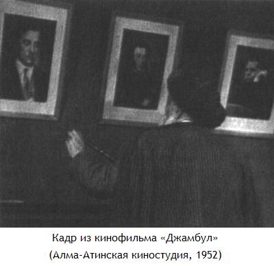 на отдельном стенде показана органическая связь творчества Джамбула с творчеством великих писателей братских республик: Александра Сергеевича Пушкина, Тараса Григорьевича Шевченко, Шота Руставели, Максима Горького[439].