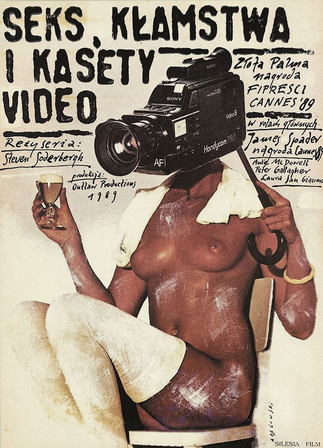 Афиши Понговского в новой Польше: «Деловая девушка» Майка Николса (1990), на ней изображена женщина, даже не слишком похожая на Мелани Гриффит, поднимающаяся по лестнице, вырезанной в голове «белого воротничка». Вскоре комедии таким образом рекламировать не будут, подобного рода визуальные шутки снова войдут в обиход в середине десятилетия, когда Польша откроет Ролана Топора. «Секс, ложь и видео» – полуобнаженная женщина с фотоаппаратом вместо головы. Типично и для Понговского, и для стиля афиш конца восьмидесятых. Работы Марка Плоза-Долинского, Витольда Дубовского, не говоря уже о последовательном Францишеке Старовейском, населял бестиарий химер, безголовые торсы, барочно-комиксные бюсты, нечто фантастическое, какое-то блуждание вокруг фрейдовских импульсов жизни и смерти. Спустя год в портфолио Понговского преобладают театральные афиши, а киноафиш только две: «Двойная жизнь Вероники» и «Танцующий с волками». Последний имел огромный кассовый успех, и это положило начало сотрудничеству художника с фирмой-дистрибьютором Solopan, которая поддерживала его связь с кино. Но загрузка работой для проката в то время была неполной, и Понговский основал авторскую студию, работающую для рекламных агентств. Уже в 1989 году у него появилось маркетинговое чутье, он пригласил бизнесменов-спонсоров к сотрудничеству в рамках своей выставки в «Захенте». Для проекта «Город плакатов» в галерее соорудили кусочек улицы, чтобы плакат мог выступать в среде, максимально приближенной к естественной; был показан фильм, в котором демонстрировались буклеты ITI, компьютерная графика (Понговский в то время входил в группу EGA, которая, пожалуй, первой в Польше стала использовать компьютеры в работе художников) и даже кусочек эротической афиши.