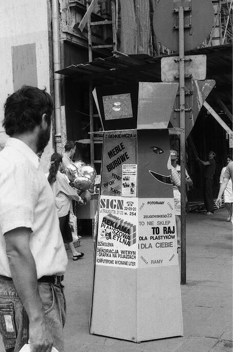 Импровизированная тумба для объявлений на лодзинской улице, 1990