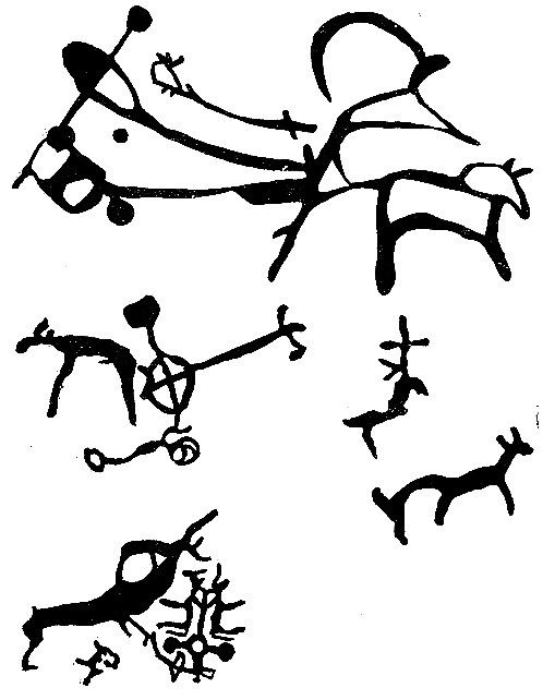 Рис. 28. Воины, охотники, солнцеголовые олени. Чулуут
