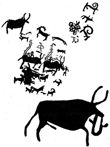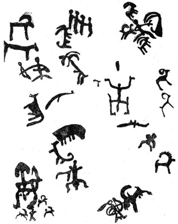 Рис. 30. Рисунки в «декоративном стиле» эпохи бронзы. Чулуут