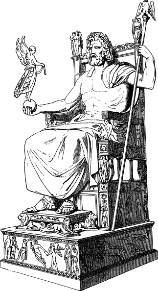Каждое из этих государств представляло по-своему духовный характер эллинской нации: дорийцы в национальном, нравственном и политическом отношении, ионийцы в общечеловеческом и промышленном, пока наконец оба эти направления достигли высшей художественной законченности, слившись вместе в народе афинском», (рис. 7, Зевс Олимпийский. Графическая реконструкция XIX в.)