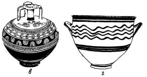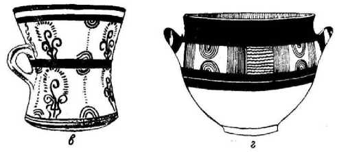 Рисунок 14. Элладские сосуды ХЛ—Ш вв. до н. э.: ПЭ IIIС (в —узкий стиль, г — амбарный стиль)