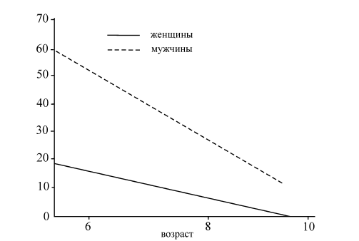 Диаграмма 7.3. Процентное соотношение употребления нелитературного [и: ] девочками и мальчиками трех возрастных групп Эдинбурга [Romaine 1984, 101].