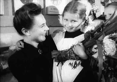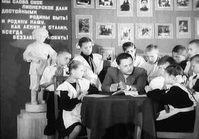 Несмотря на заданность ситуации и статуарность мизансцены, эти эпизоды не выглядят фальшивыми – создается впечатление, что ребятам действительно интересно общаться со знаменитыми гостями, а тем в свою очередь есть чем поделиться с молодежью. Один лишь заключительный кадр – общий план торжественной пионерской линейки – спустя шесть десятилетий с момента съемки не может не восприниматься как гротеск вследствие чрезвычайной серьезности при осуществлении официозного ритуала. Армейский строй учениц в белоснежных передниках вписан оператором в безукоризненную – с формальной точки зрения – композицию, центром которой выступает портрет И.В. Сталина…