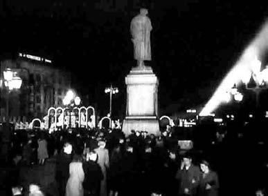 Кадры из киножурнала «Новости дня» (1953, № 7–8). Минск, Центральная площадь, в ночь с 6 на 7 марта 1953 года