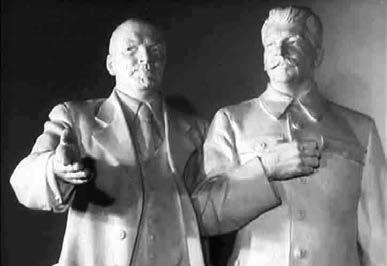 В конце января 1951 года в минском Доме Красной Армии имени К.Е. Ворошилова был снят репортаж о художественной выставке, посвя щенной выборам в Верховный Совет БССР, который лег в основу сюжета «Творчество белорусских художников» (киножурнал «Новости дня», 1951, № 3). Среди множества произведений, представленных на выставке, выделяется величественная скульптура З.И. Азгура «Ленин и Сталин – организаторы Советского государства», занимающая самое почетное место в залах экспозиции.