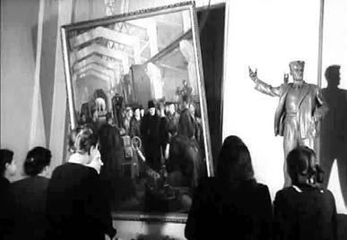 Регулярность, с которой на рубеже 1940-1950-х годов в Минске проходили художественные выставки, не идет ни в какое сравнение с другими направлениями культурной жизни. Каждая из выставок обязательно фиксировалась хроникерами белорусской киностудии. Не реже двух-трех раз в год в белорусском киножурнале появлялись совершенно однотипные репортажи: аккуратно одетые девушки и офицеры в парадной форме внимательно осматривали живописные полотна «Товарищ Сталин в Туруханской ссылке», «Ленин и Сталин в Горках», «Сталинградские гости у минских строителей» и другие, близкие им по тематике и стилю.