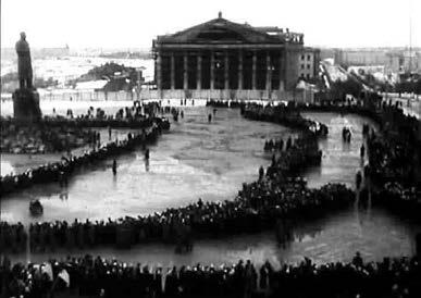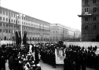Исключительное право постоянного присутствия в эпицентре траурной церемонии было дано режиссерам Ю. Стальмакову и С. Сплошнову, кинооператорам хроники М. Берову, С. Фриду и В. Окуличу. Примерно с 14 часов они постоянно находились на Центральной площади, последовательно фиксируя ход церемонии.