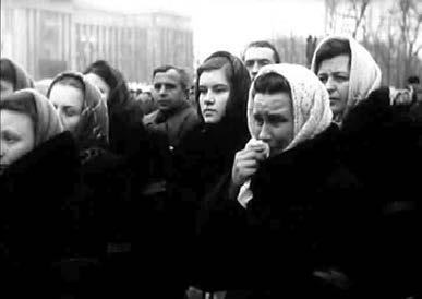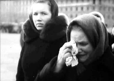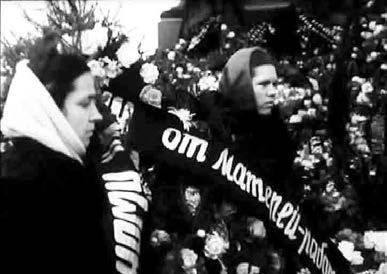 Вследствие того что съемка траурного сюжета началась в середине дня и продолжалась до глубокой ночи, огромную роль приобрел фактор временного континуума: от кадра к кадру угасает не по-весеннему холодный день, сгущаются сумерки, наступает ночь. Но не видно конца людскому потоку и нескончаемо горе невосполнимой утраты…