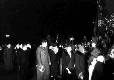Своей работой кинематографисты оказали серьезную услугу городским властям, отвечающим за организацию митинга. Поскольку вопрос ночного освещения церемонии никто своевременно не продумал, еще до начала сумерек режиссер Юрий Стальмаков съездил на киностудию и договорился о подключении на площади мощных дуговых прожекторов. Два осветительных прибора были закреплены на штативах прямо в кузове грузового автомобиля, которому было определено место в двух десятках метров от монумента. Это было идеальное решение, поскольку только так осветители могли направить узкие световые лучи прожекторов в район пьедестала, где проходил заключительный акт прощания с любимым вождем…