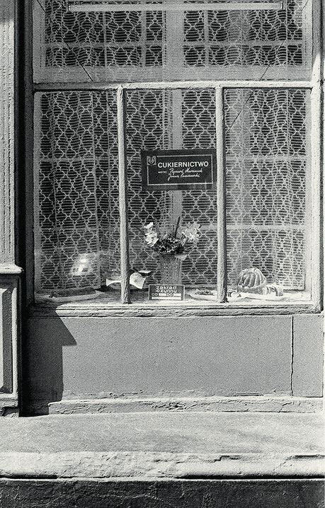 На снимках Феликса Ормерода, документирующих «дешевые путешествия во времена великой инфляции», ничего этого не видно. Разумеется, здания обшарпаны, информационные таблицы выцвели, но во всех других отношениях Польша, особенно ее небольшие города, кажется вполне приятной и неожиданно спокойной. Вот прекрасный августовский день на старом рынке в Хелмно: клумбы бархатцев, молодежь в разноцветных нарядах прогуливается вдоль восточного фасада. Молодая женщина с ребенком в коляске останавливается перед столовой под названием «Кафе-бар “Тортик”», с вывеской в стиле ретро, как бы ручной работы, с завитушками, под ней непременное декоративное окно, то есть занавески и суккуленты. На другом снимке того же города мы видим толпу туристов, идущих от Грудзёндзких ворот, а на стенах домов – реклама WPHW (витрина скромная – жидкость для мытья посуды и небольшая пирамидка пакетов неизвестного назначения), рядом – «Часы» (магазин явно пуст). Витрины напоминают те, что в 1988 году фотографировал в Польше канадец Дэвид Хлинский, – простенькие витрины с драпированными, плохо отстиранными занавесками и шторками, искусственными цветами и поблекшими плакатами. Через два года витрины уже будут украшены модной фольгой неоновых оттенков. «Иностранные названия и заграничные товары создают впечатление, что находишься где-то в Западной Европе», – слышим в фильме 1992 года, рекламирующем город. Диктор с неудовольствием упоминает кварталы домов из железобетонных панелей и хвалебно отзывается о новом микрорайоне Пилсудского с малоэтажной застройкой, где нас встречает пиццерия-паб под названием «Капучино» [sic!] (на вывеске шрифт Choc – литеры Роже Экссоффона были распространены во всей Польше девяностых годов, трудно поверить, что они были созданы на несколько десятилетий раньше). Грудзёндз кажется прекрасным, хоть и сонным городом. На рыночной площади в деревянных бочках хвойные деревца, в окне большого голубого дома Клуба международной прессы и книги – флаги стран всего мира. Чуть дальше – торговый центр: реклама в стиле шестидесятых, но название на витрине явно ближе к девяностым годам: Grudimpex, от Грудзёндза, импорта и экспорта. Иновроцлав грязноват, зато в нем полно рекламы луна-парка. Везде виден цвет, иногда, разумеется, запыленный, неизменное прилагательное «серый», которое так часто употребляется по отношению к тогдашней Польше, сюда совершенно не подходит. Августовское солнце, разумеется, в силах придать красоту самым неприглядным уголкам, но может ли быть, чтобы польский ноябрь был так же благосклонен к английскому путешественнику?