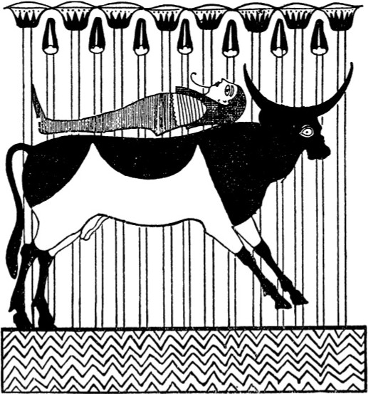 Рис. 3. Осирис в образе быка переносит своего почитателя в потусторонний мир