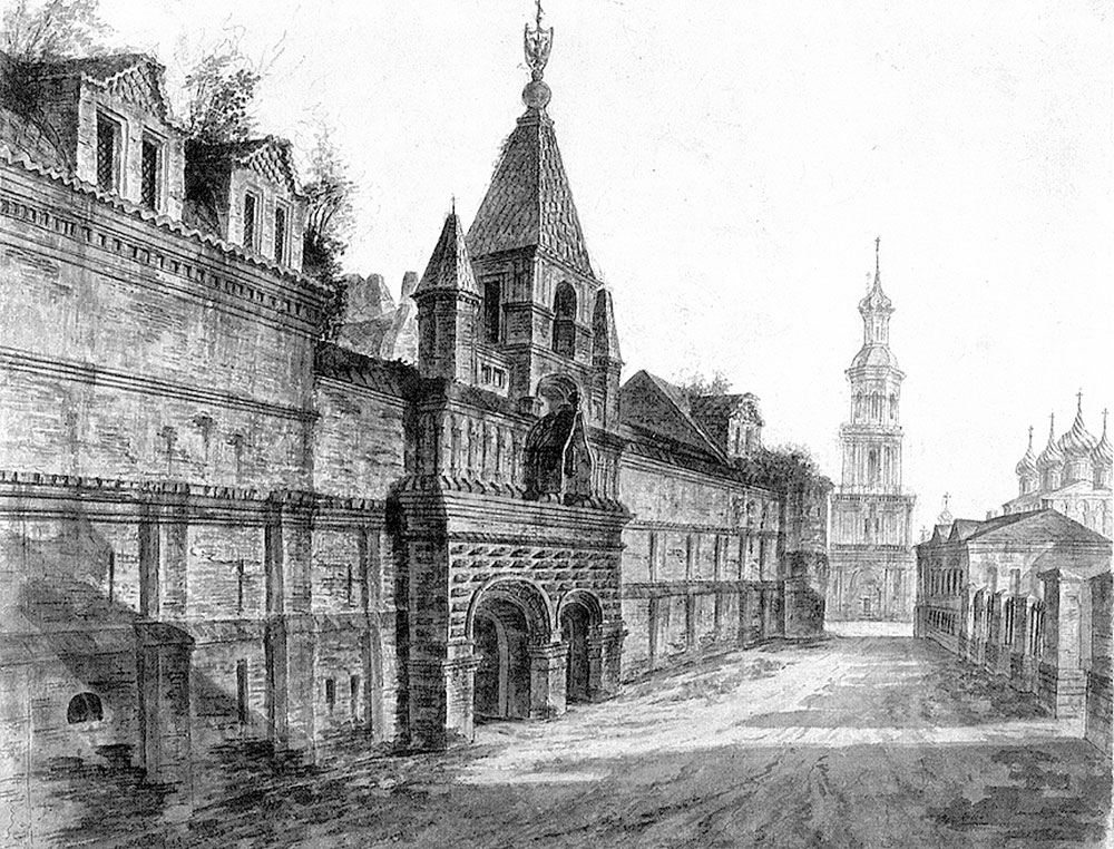В 1493 году в Заречье случился сильнейший пожар. «А из Заречья в граде загореся князя великого двор и великие княгини, и оттоле на Подоле житници загорешася и двор князя великого новои за Архангелом выгоре и митрополич двор выгоре… и церковь Иоанн Предтечя у Боровитцких ворот выгоре и западе…»[4] – сообщает Симеоновская летопись. Во время частых московских пожаров пламя легко переносилось ветром с одной стороны Москвы-реки на другую. Чтобы хоть как-то предотвратить пожары в Кремле, великий князь приказал застроенный участок правого берега очистить и устроить на нем Государев сад. При Василии III сады в Заречье разрослись еще больше, а позже появились сады купеческих владений. Садовники поселились в трех слободах (отсюда и название этой местности – Садовники, а также Садовнических набережной, улицы и переулка).