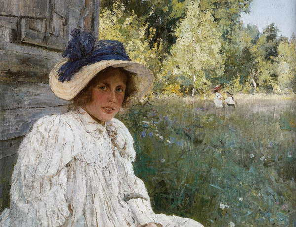 В те же годы Серов написал еще несколько портретов, заказных и незаказных, исполненных более или менее удачно, но, во всяком случае, не выдающихся: Ильи Ефимовича Репина, историка Забелина, два портрета Людмилы Анатольевны Мамонтовой; летом 1892 года в Домотканове он написал портрет дочери Дервизов Лели, а следующим летом, в Крыму, портрет Львовой, владелицы дачи, где он жил около Бахчисарая, в местечке Кокозы. Там же он написал небольшую вещицу «Крымский дворик». Это очень тонкая живопись, рассматривание ее доставляет истинное наслаждение. И чувствуется, что писалась картина с наслаждением, так любовно и в то же время неназойливо выписаны подробности. Но, пожалуй, самым характерным в ней была не сама живопись.