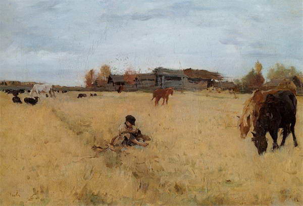 Серовских работ периода этой поездки сохранилось мало. Самый значительный — «Пейзаж с церковью»: окраина городка, выжженная солнцем земля, все пустынно и скучно — настоящая провинциальная Россия.