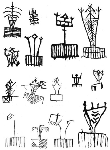 1-я группа — фигуры с рогами на голове и елкообразным символом, возможно тоже обозначающим рога. (49/50)